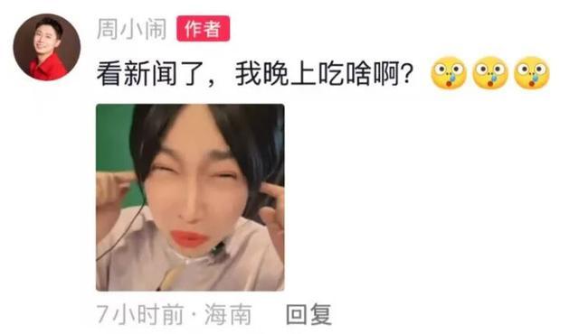 3月15日,周小闹在评论区留言:“看新闻了(刘文祥塌房了),我晚上吃啥啊?”
