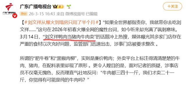 3月14日,话题“刘文祥鸭肉当猪肉牛肉卖”冲上热搜。